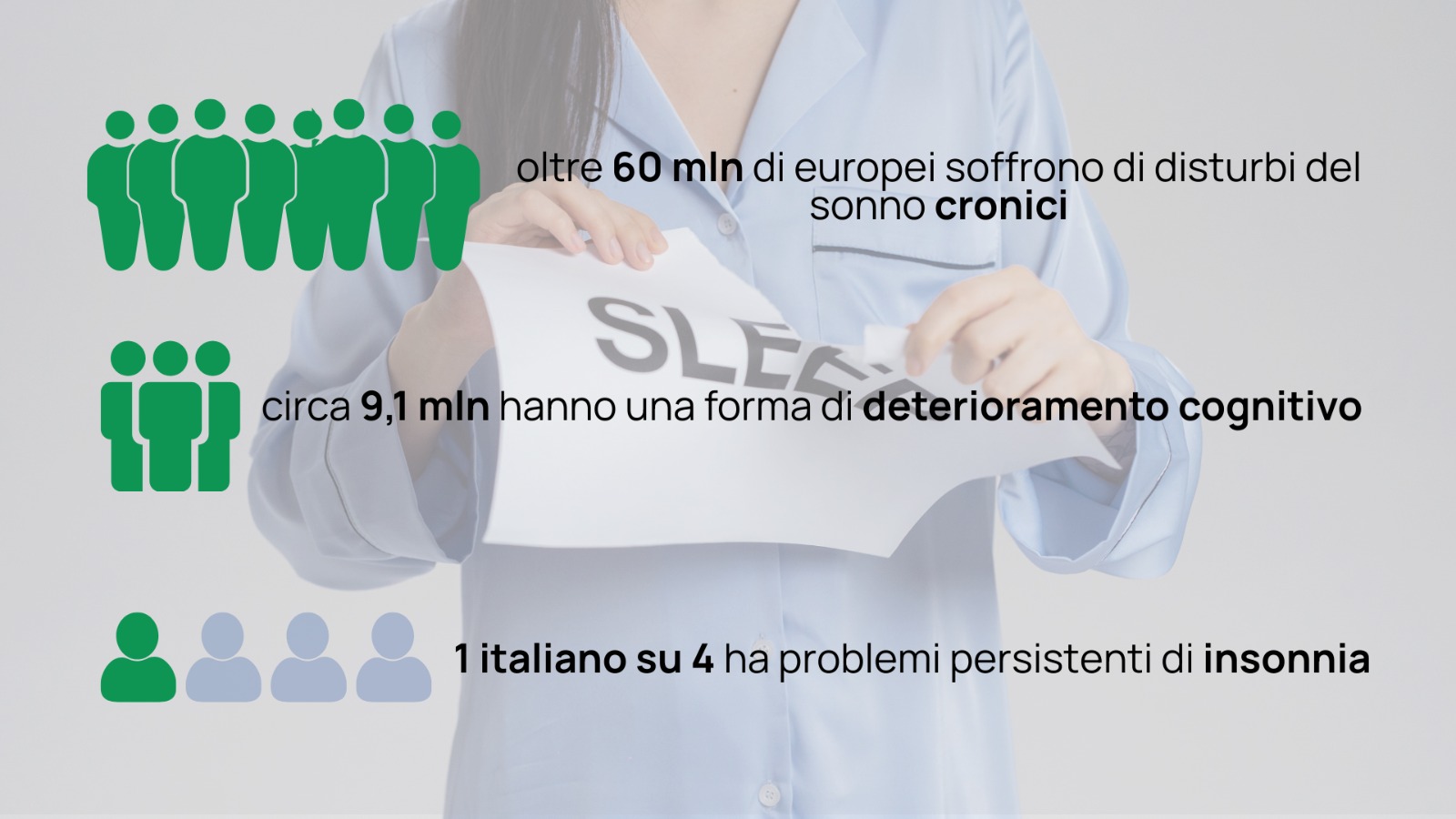 L’impatto di questi fenomeni è tutt’altro che marginale. In Europa si stima che oltre 60 milioni di persone soffrano di disturbi del sonno cronici, mentre in Italia circa un adulto su quattro riferisce problemi persistenti di insonnia o riposo non ristoratore. Parallelamente cresce anche il numero di persone affette da demenza: secondo le stime europee, circa 9,1 milioni di cittadini europei convivono con una forma di deterioramento cognitivo. In Italia i casi sono più di un milione e mezzo e il numero è destinato ad aumentare con l’invecchiamento della popolazione.